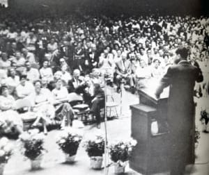 Therefore, at the 1935 convention in St. Louis, Optimists agreed as a matter of policy that business reciprocity among members was normally the natural result from close contact and friendship among those who worked together for others, and that too much emphasis on it for purposes of gaining members or in new Club building could be harmful. Concern was also noted that an ambitious boys work program might throw too great a responsibility on already financially embarrassed Club members and that elaborate and expensive programs for boys were creating a burden beyond what could be called reasonable during a financial crisis. And while 16 new Clubs had been established during the 1933-34 year—built by professional organizers – the funds of Optimist International were running low. Several members, most of whom had been active from the start of the organization, signed a note together for sufficient funds to operate for the balance of the year. Shortly before the 18th annual convention in Fort Worth in 1936, Immediate Past International President Henry Schaffert approached International President Walter J. Pray with a plan to help raise funds to keep the organization going. He admitted that the plan wasn’t original with him because he had seen it work with other organizations and several country clubs. Pray agreed with the proposal and allowed Schaffert to address the delegates.